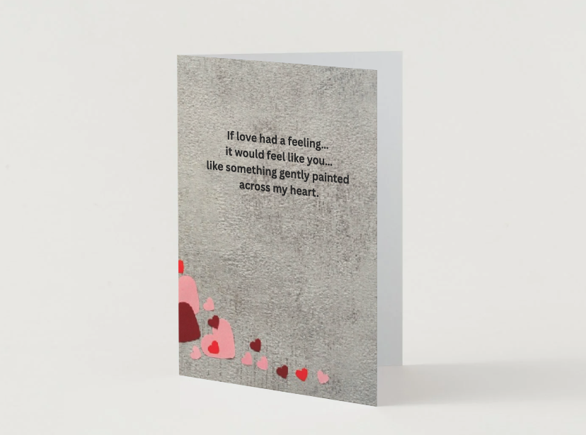 Paired with the heartfelt message “If love had a feeling… it would feel like you,” this card captures the idea of love leaving a lasting impression like art painted across the heart.