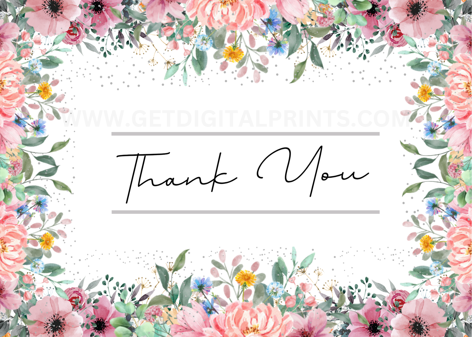 A premium printable thank you card variety bundle including multiple coordinated designs in one download. Perfect for weddings, brunches, galas, showers, and everyday appreciation messages. Size: 7x5in, 3 one sided cards.