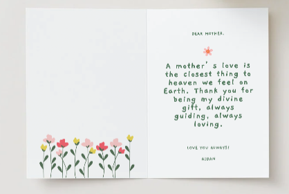 A playful Mother’s Day card with a cute sun illustration and a sweet quote simple, cheerful, and uplifting.