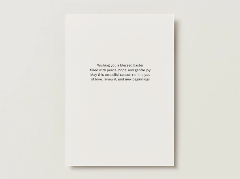 The delicate watercolor style and calming color palette create a refined and timeless look, making it perfect for friends, family, or anyone who appreciates a thoughtful and faith inspired Easter greeting. This design blends warmth, renewal, and grace into a truly meaningful card.