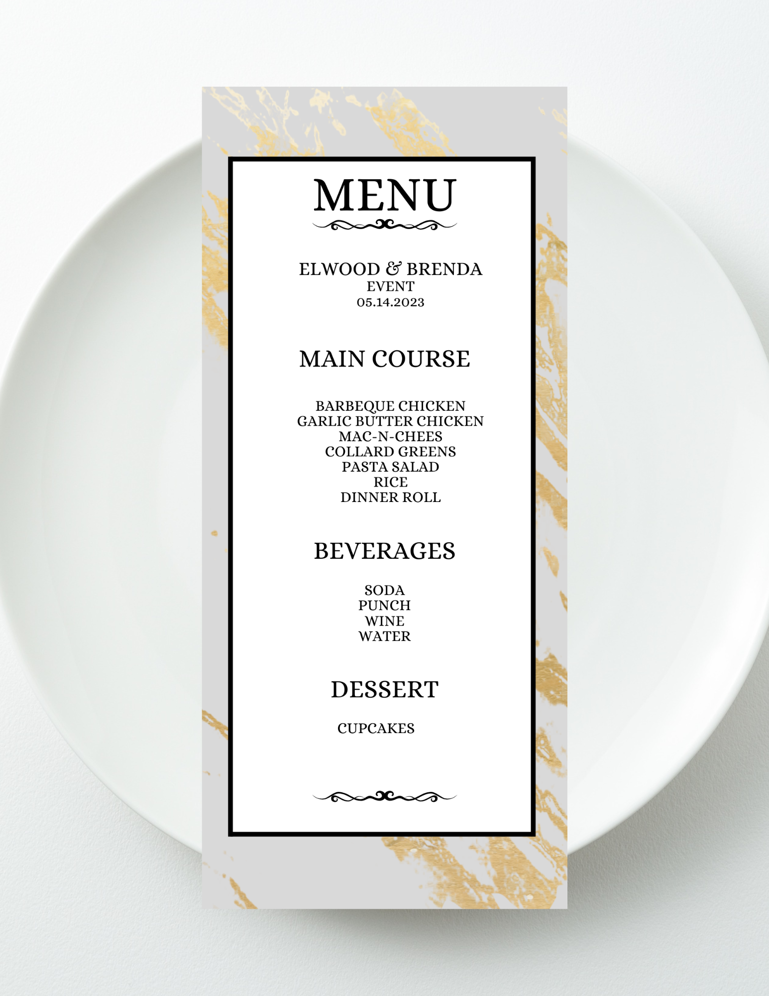 This printable menu is ideal for event planners, brides, hosts, and professionals who want a timeless design that works across multiple themes and color palettes.