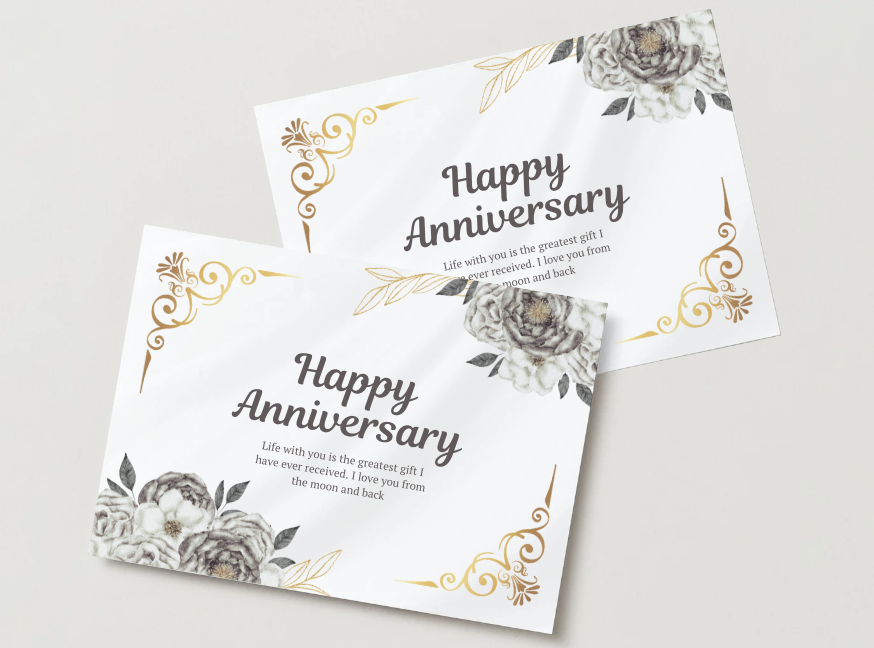 Designed with elegant floral corner accents, this printable anniversary card offers a classic and graceful way to celebrate enduring love.