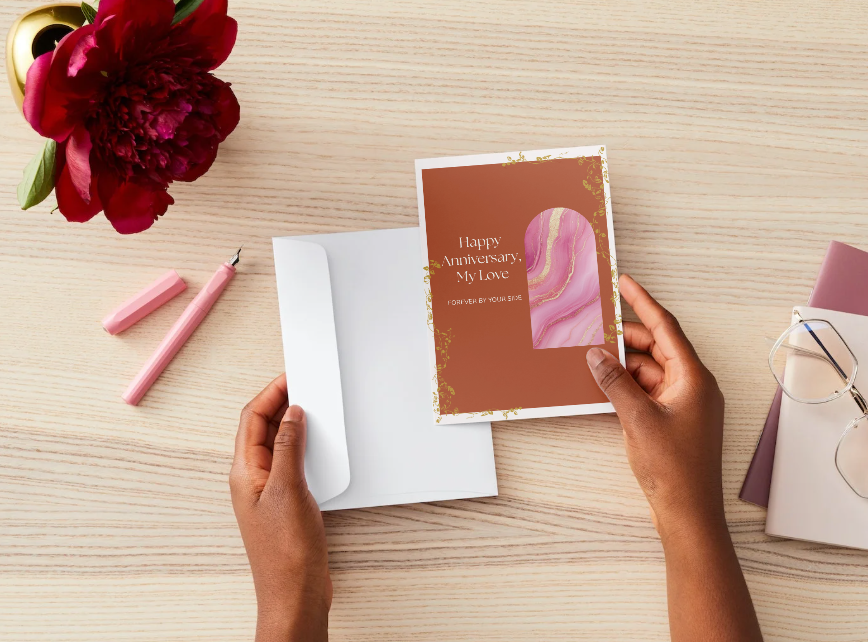 This printable anniversary card features a contemporary minimalist design that works beautifully for couples who appreciate simplicity and elegance.