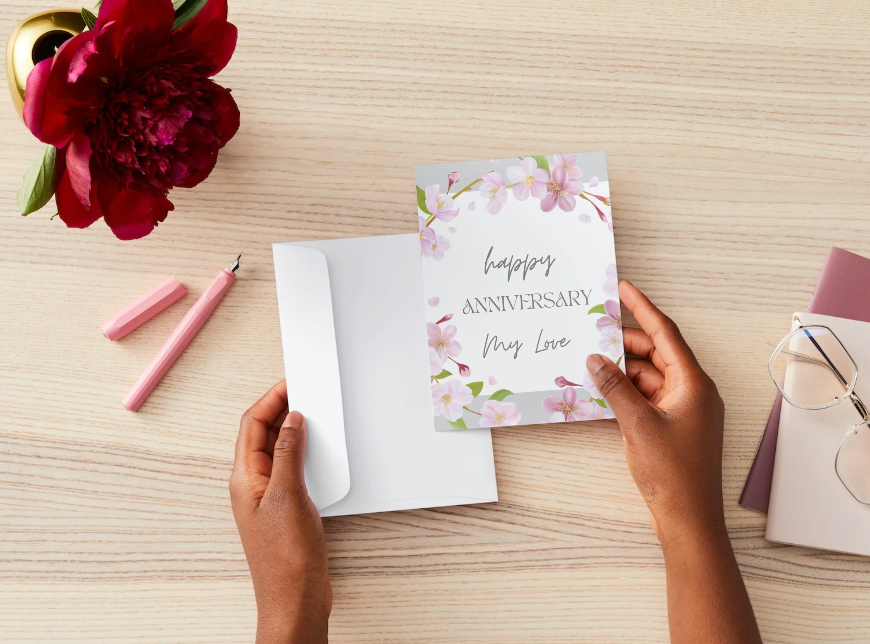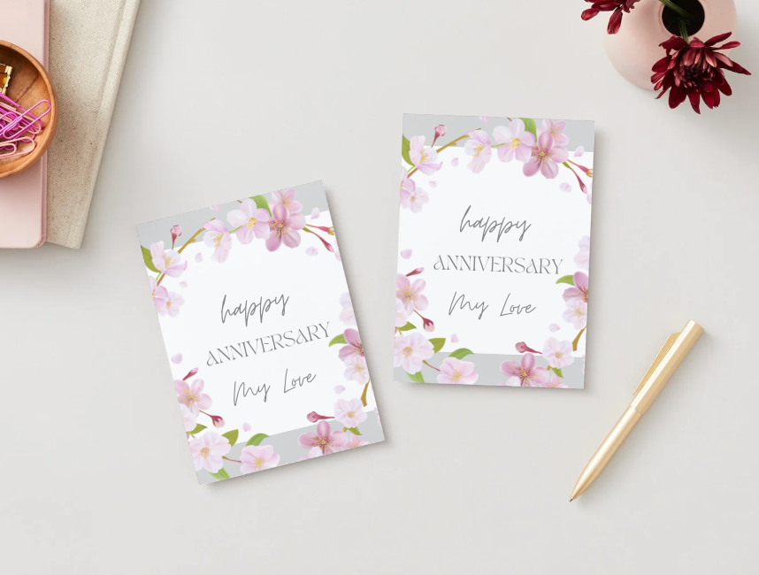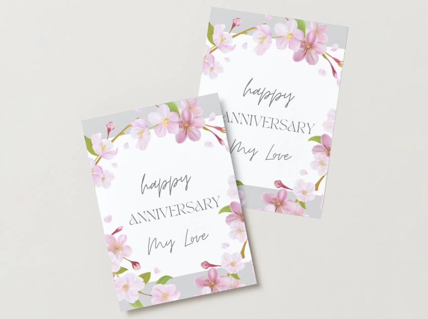 Featuring delicate cherry blossoms and romantic typography, this printable anniversary card is perfect for celebrating love, growth, and partnership.