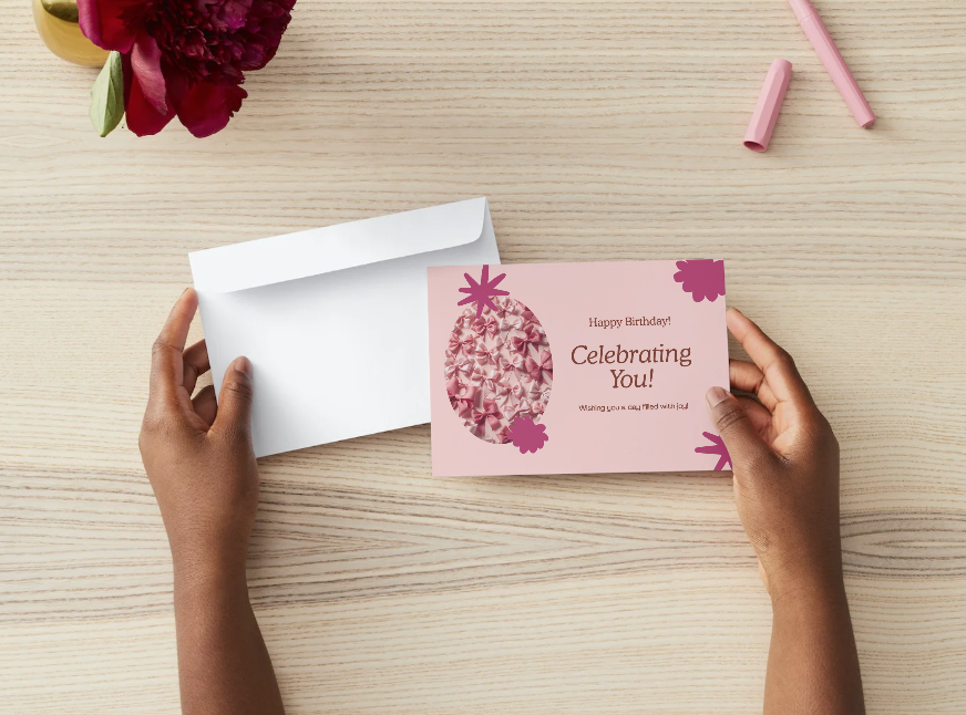 This modern birthday card features a playful pink color palette and a bright, uplifting message. Perfect for friends, family, or anyone who loves a fun yet polished design.
