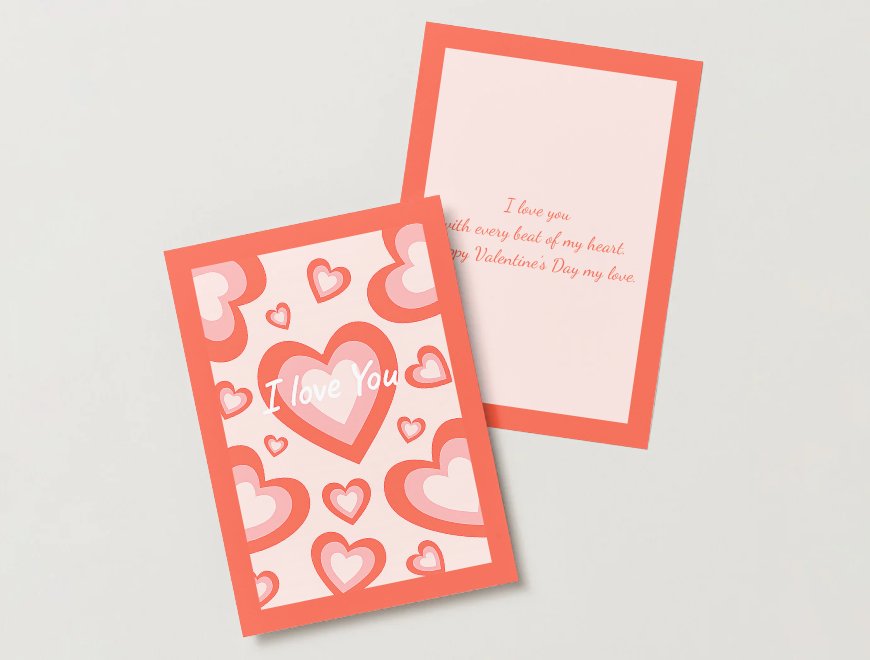 Express your love in the sweetest way with this I Love You Valentine’s Day Card Printable, designed with playful layered hearts in soft pink and coral tones. The bold yet romantic heart pattern surrounds a handwritten style “I Love You” message, making this card ideal for celebrating love in a joyful, modern way.