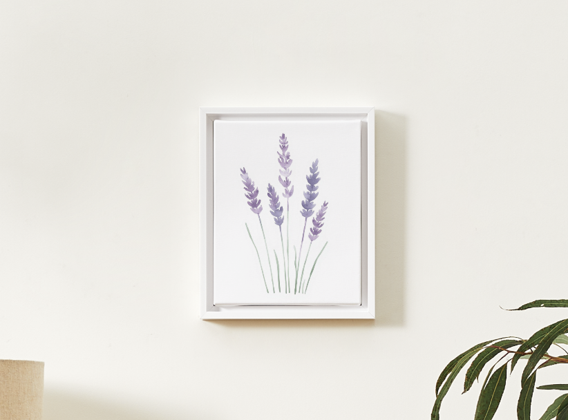 Perfect for bedrooms, bathrooms, spa inspired spaces, or modern interiors, this artwork adds a gentle touch of nature while maintaining a clean and refined aesthetic. The soft lavender tones are known for their calming effect, making this piece ideal for creating a tranquil environment.