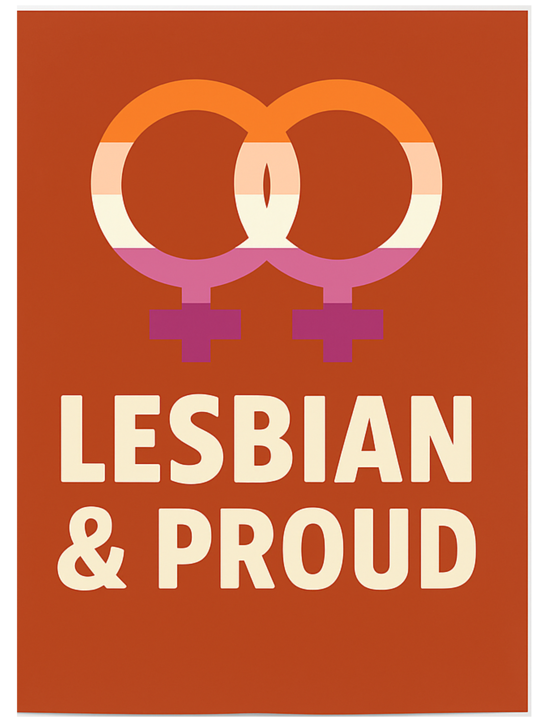 Make a confident statement with this “Lesbian & Proud” printable poster in 18×24. Featuring bold typography and double Venus symbols filled with lesbian pride flag colors, this design is modern, striking, and unapologetically affirming—perfect for Pride season and year-round visibility.