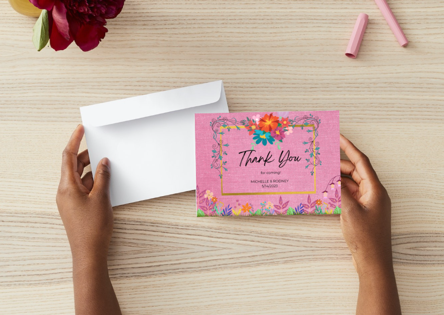 Pink Meadow Thank You Card – Whimsical Floral Frame Design