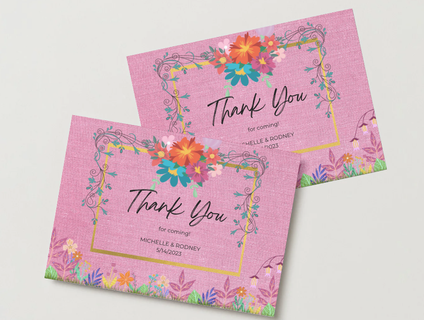 A premium printable thank you card designed for versatile use from weddings and showers to brunches, galas, and everyday appreciation. Ideal for sending warm, stylish gratitude messages for any event. Size: 7x5in, one sided card.