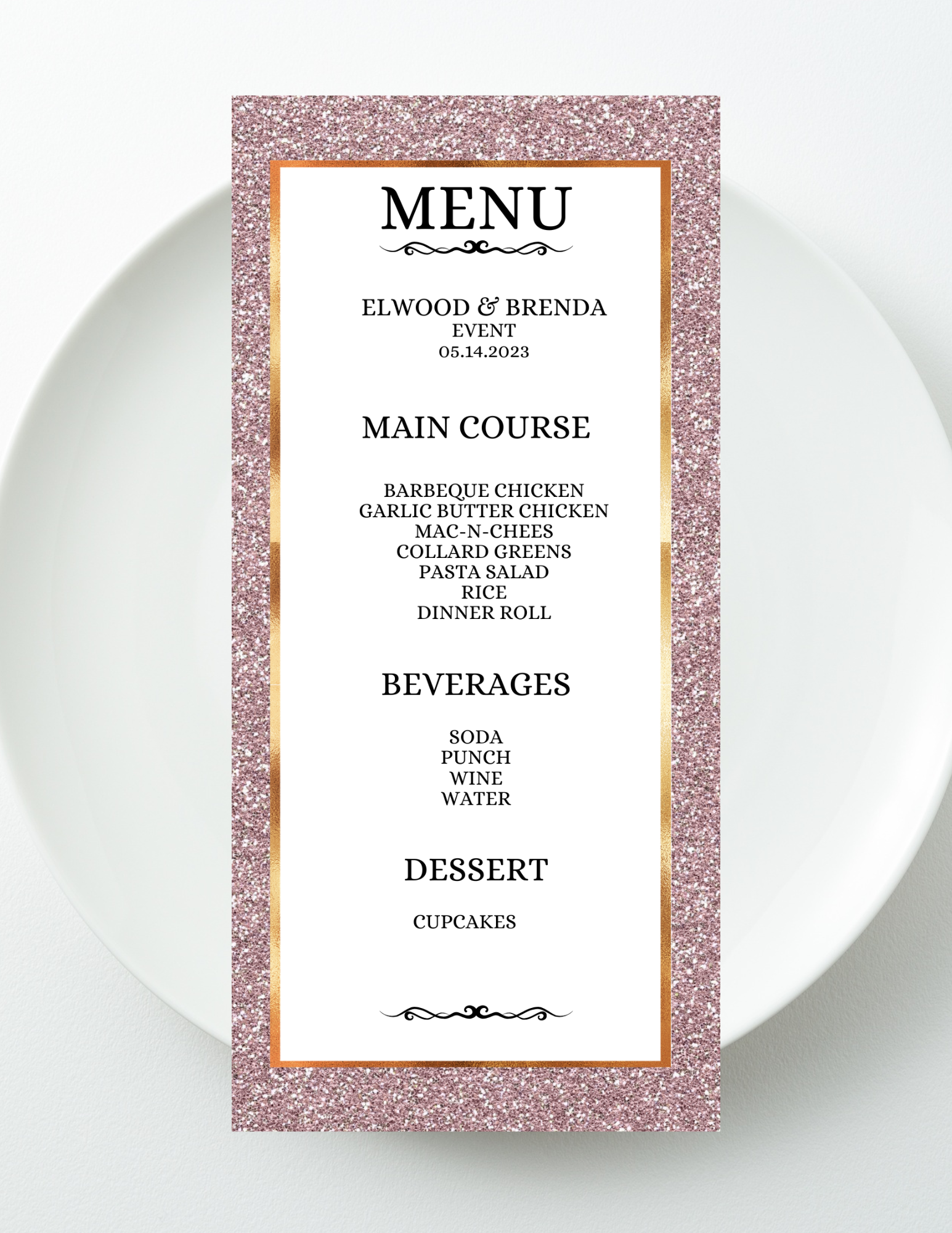 Rose Luxe Event Menu Template