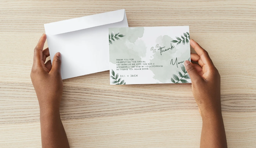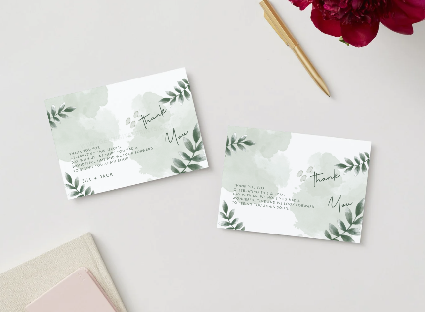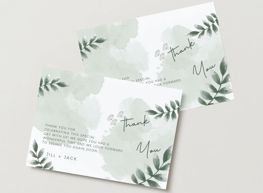 Ideal for minimalist weddings, garden events, eco inspired celebrations, and modern gatherings, this card delivers appreciation in a calm, thoughtful, and polished way. Its clean layout and soothing color palette make it a versatile choice across seasons and event types.