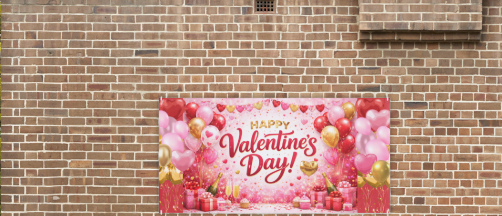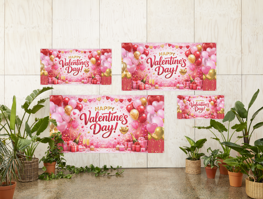 This digital backdrop is provided as a high-resolution 7000 × 3500 px master file, allowing customers to scale the design to a variety of banner sizes at their local print shop without losing quality. The design features rich Valentine’s colors, balloons, hearts, gift details, and celebratory elements that create an eye catching focal point for photos and décor.